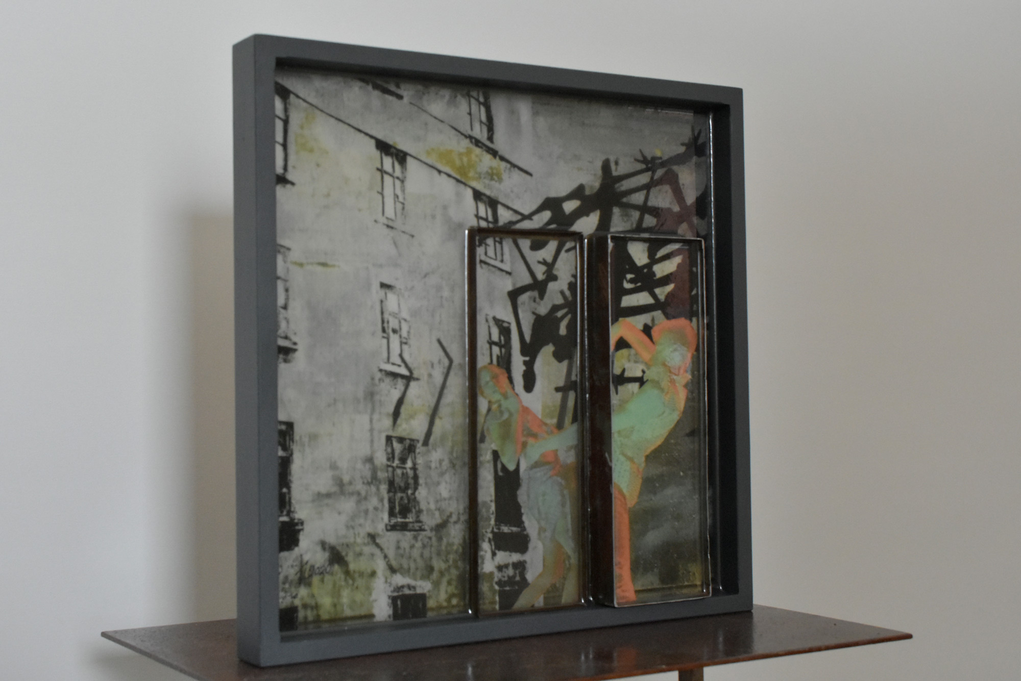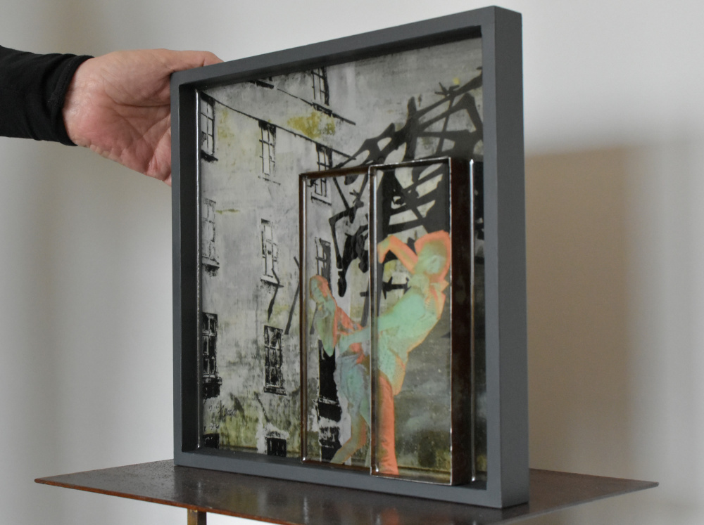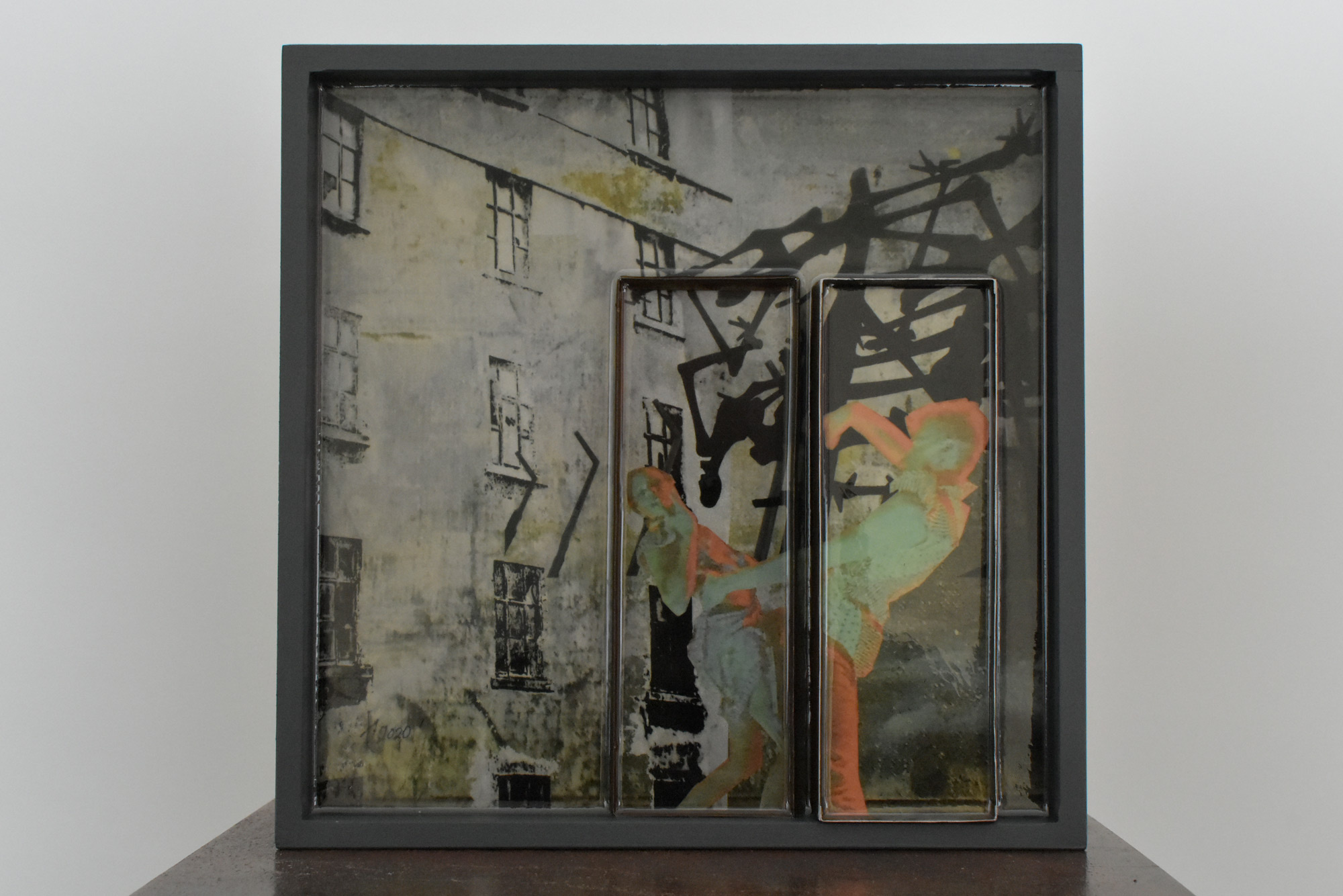 Dabei werden unterschiedliche Materialien und Techniken angewandt; die Bilder sind in Gießharz konserviert – dadurch wird die Geschichte die sie erzählen sowohl eingefroren als auch transparent.
