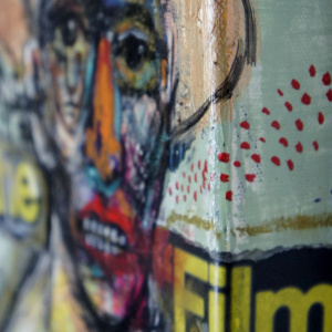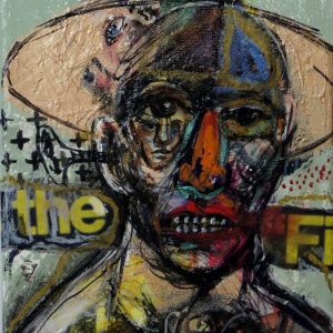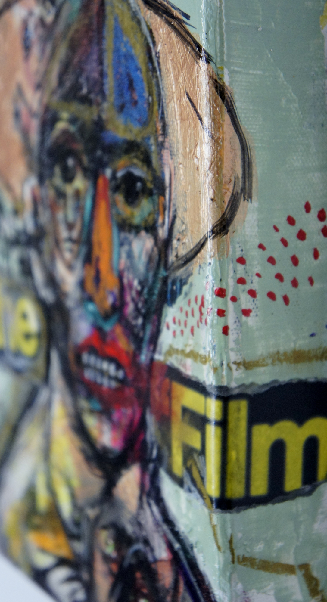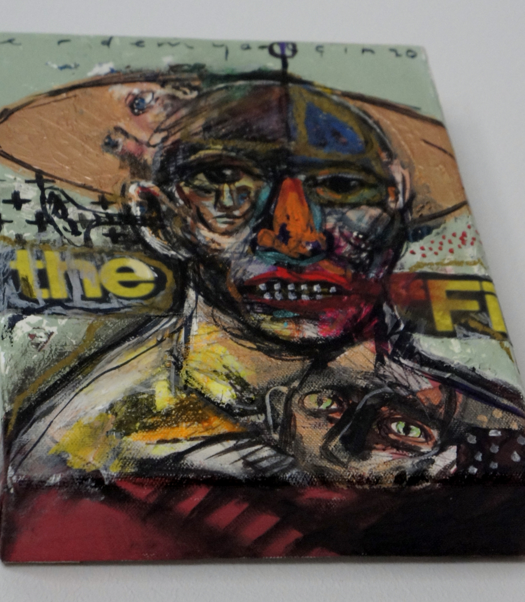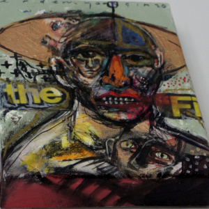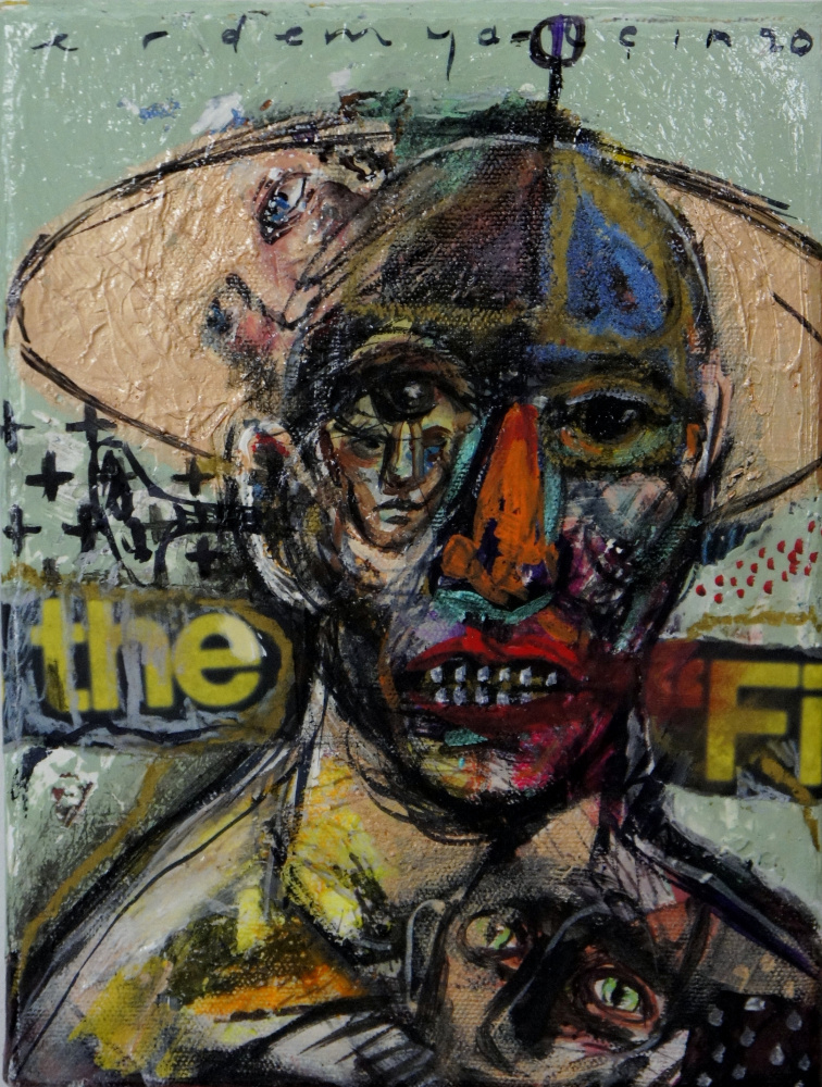 Technique: mix media on canvas (collage, acrylic, oil pastel, ink)